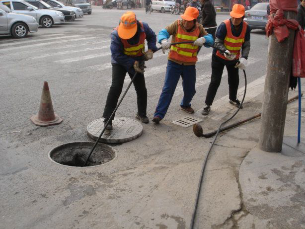 需要注意的是,我们清洗时需要重视安全问题。由于下水管道中的污水通常会析出如硫化氢、二氧化碳、甲烷等气。某些生产污水还会析出苯、汽油等气体,这些气体与空气中的氮混合后能形成爆炸性气体。具体做法是: 操作人员首先必须准备劳动保护用具,其次在下井前需先检测井内气体,如遇到缺氧,必须采取有效措施。另外,在井内工作,不能点明火或者吸烟。要戴上附有气带的防毒面具,穿上系有绳子的防护腰带,下水管道疏通井上要有其他操作人员,以备适时给井下人员必要的援助,避免造成事故。