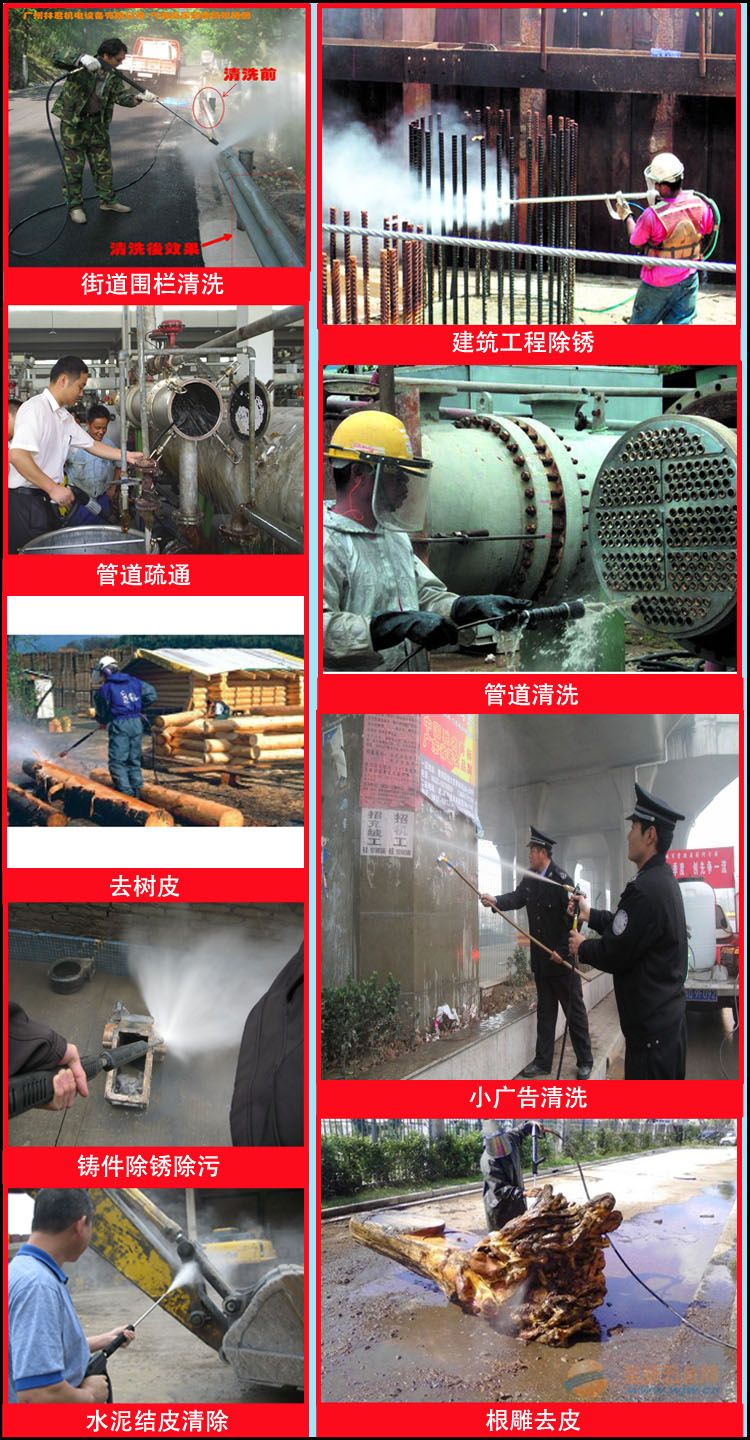 超高压冷水清洗机,工作压力公斤,水流量每分钟55升,采用三陶瓷柱塞曲轴泵,低速电机,机身紧凑四脚轮装配移动轻便,冷凝器列管清洗疏通等。