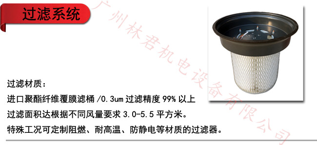 过滤网种类:进口聚酯纤维覆膜滤桶/0.3um过滤精度99%以上