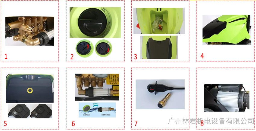 清洗机背部设有热保护阀,当电 机在使用过程中温度升高,对电 机有影响的时候回自动断电,从 而保护电机