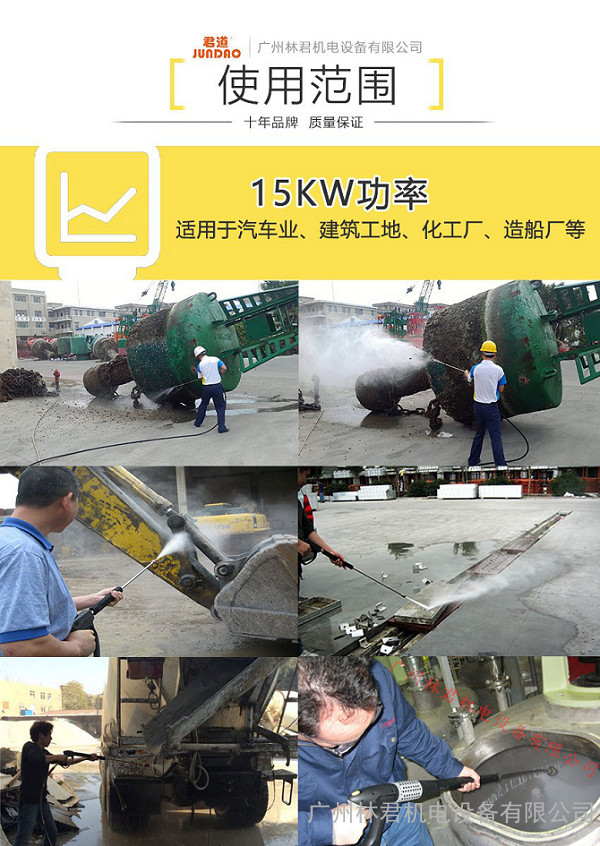 工业级超高压冷水清洗机,清洗压力高达350公斤流量21升/分钟,采用意大利进口高压泵,采用三陶瓷柱塞曲轴泵,高压泵连接件使用304不锈钢或铜质件,无级调压阀与安全阀双重配置,双重保护安全稳定。电机采用西门子低速电机,电器控制键采用正品正泰可享受全国联保,缓冲式分体固定传动连接对比内插式、钟罩传统连接更加稳固耐用,配置外循环缓冲水箱解决高压泵内循环产生内热,有效提升了高压清洗机的使用寿命。机身采用工业级框架式结构,主要部位加装防护板坚固耐用,并可实现快速保养,承重型四轮装配,后置万向轮方便移动。 适用于电厂除垢除漆、预热结皮清堵、铸件表清洗、化工树脂及冷凝器列管清洗疏通等。广泛于造纸厂、化工厂。